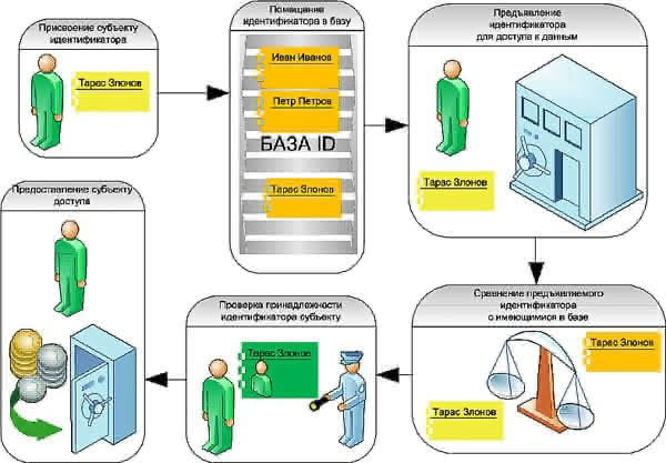Идентификация (Identification) — присвоение субъектам и объектам доступа идентификатора и (или) сравнение предъявляемого идентификатора с перечнем присвоенных идентификаторов.